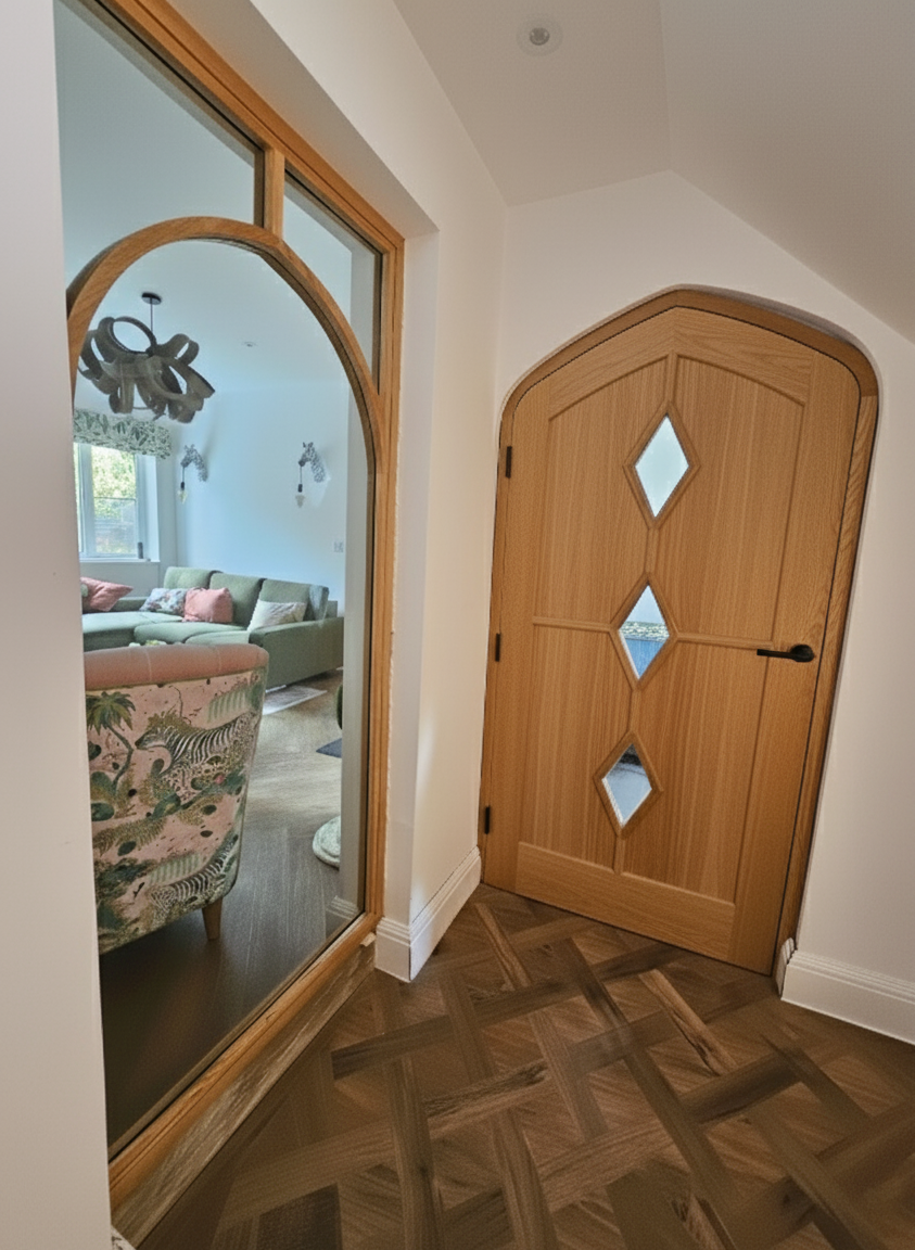 After over 30 years of living in the property the owners handed over the responsibiliy of restoring the Coach House to Gerald Phillips (Architect), myself and Reilly Construction of Arundel. During the strip out of the building the Grade II listed Sgraffito, in the Great Room, was covered for protection, hidden gems were found, fire scortch beams were uncovered, and new layouts achieved to realise the potential the clients always knew the property had.